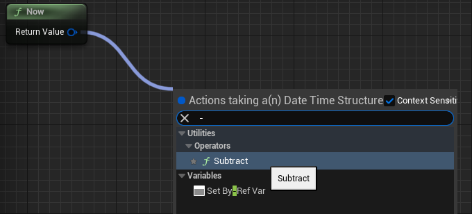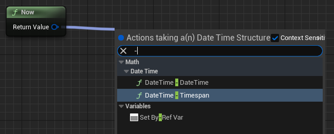 - UnrealEngine issues Subtraction Node wild card inputs incorrectly assigns Time Span data type when given a Date Time data type