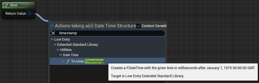 このプラグインには巨大な整数値を保持する LowEntry Long オブジェクトが実装されており、 DateTime から UNIX Timestamp(1970 年 1 月 1 日 0 時 0 分 0 秒からのミリ秒単位の数値)をこの LowEntry Long オブジェクトで取得することができます。 ここから任意の整数値の加減算が可能です。