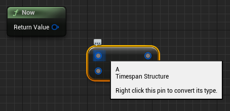 ただ、減算ノードのピンの型が確定しているようなのでピンにマウスカーソルを重ねてみると、Timespan 構造体になっていることがわかります。